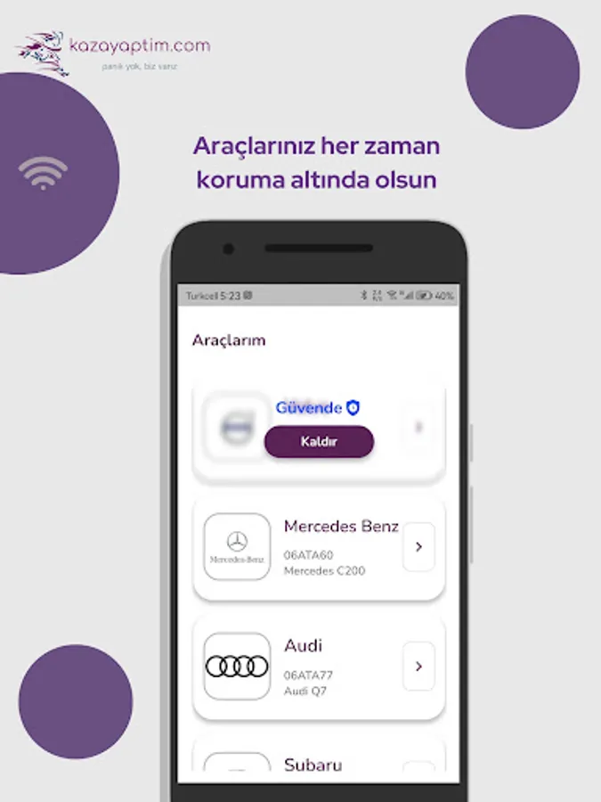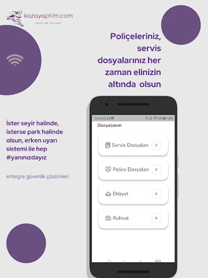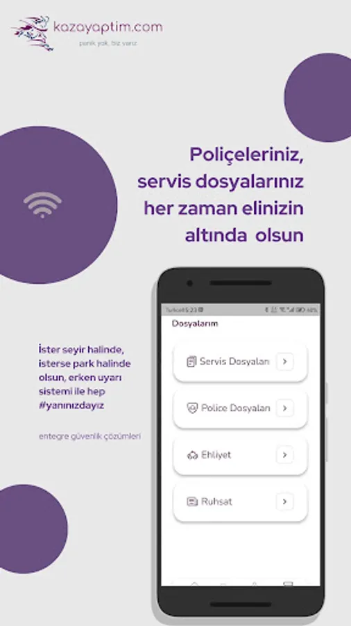 You can keep the security of your vehicles (Theft Protection), past insurance and service files on a single application, you can track your vehicle live with the vehicle tracking device, and you can get live support from us in case of any problem.