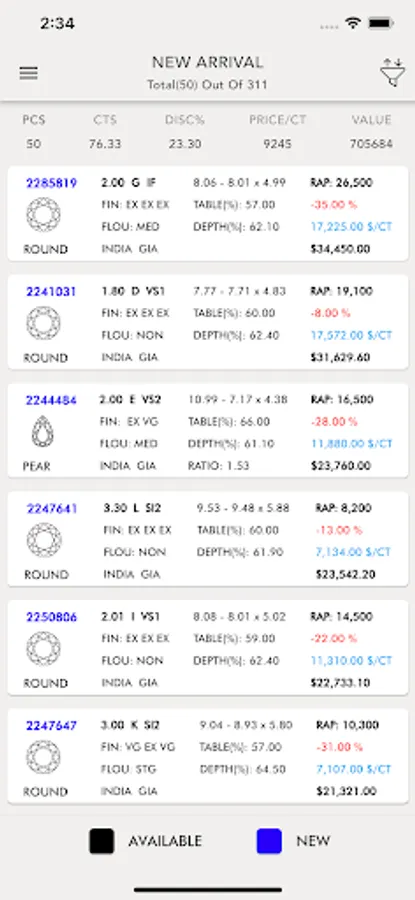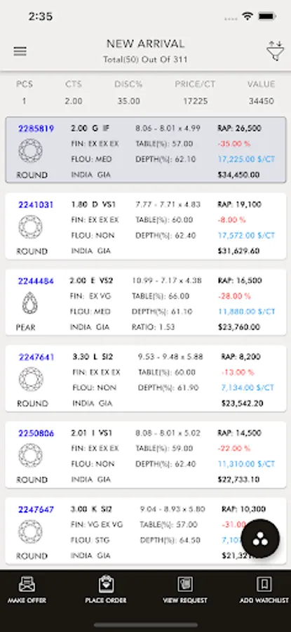 Download now, to get exclusive access to the best diamond deals. Browse, compare and buy a wide range of certified quality diamonds at the ease of your fingertips. Access an exclusive list of round and fancy shape diamonds at a discounted price. All diamonds are GIA, IGI or HRD certified. Enjoy this features: