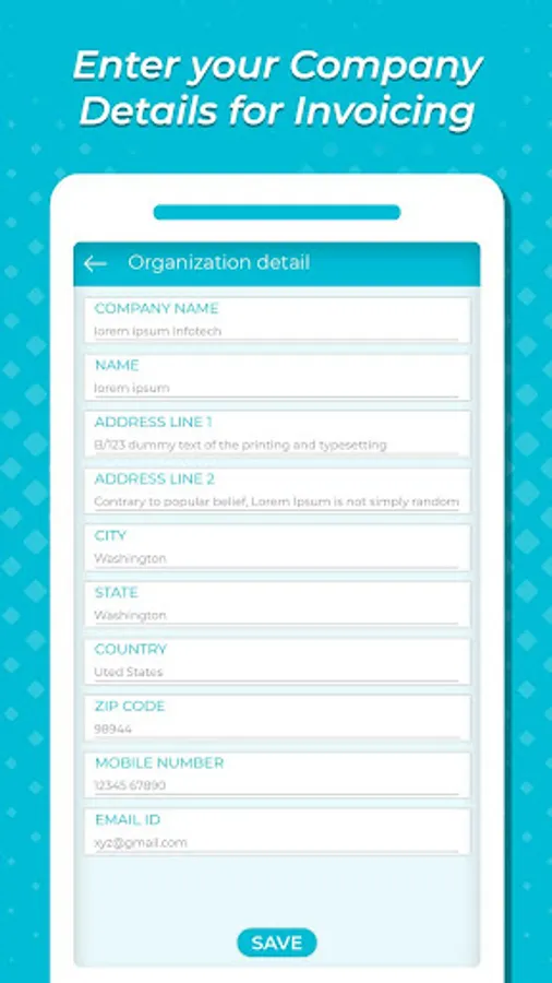 - Enter your Organization details (Name, Address, Phone, and Email)