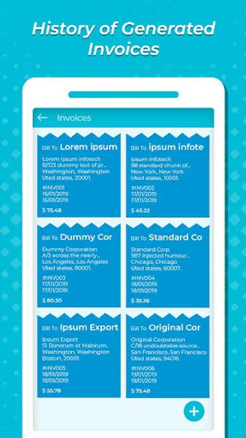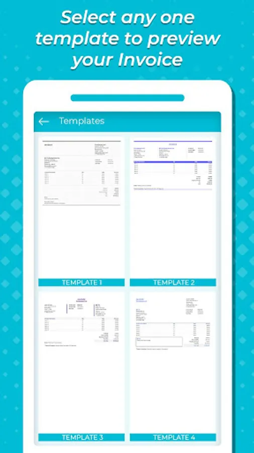 - App provides basic samples/templates to create Invoice, You can preview template and after selecting template generate PDF file of Invoice.
