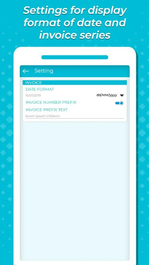- From settings, you can change date formats and Default Invoice series prefix letters