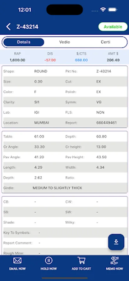The app simplifies the buying process by allowing customers to purchase diamonds with a simple tap. All diamonds are GIA, IGI or HRD certified.