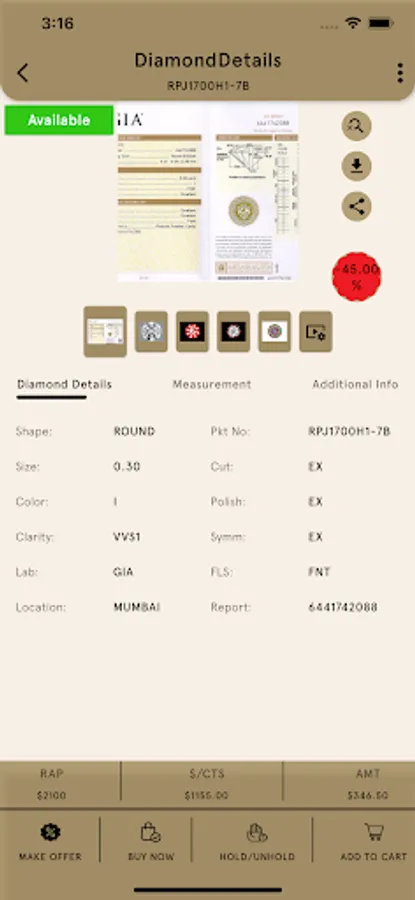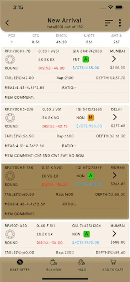 Tirupati Diamond application, you can quickly and easily find out diamonds. This is a free application for Tirupati Diamond business user to buy diamonds. Just enter the stone's parameters (carat, clarity, color,) into this simple and user-friendly application and get a full stock list of diamonds.
