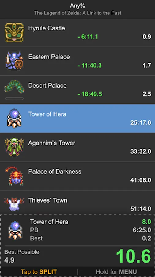 Finally a mobile speedrun timer that gives you all the features you would expect, while freeing you from the shackles tying you to your computer.