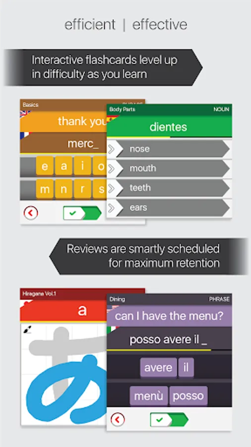 - Flashcards are scheduled by smart algorithms, proven to ensure maximum retention.