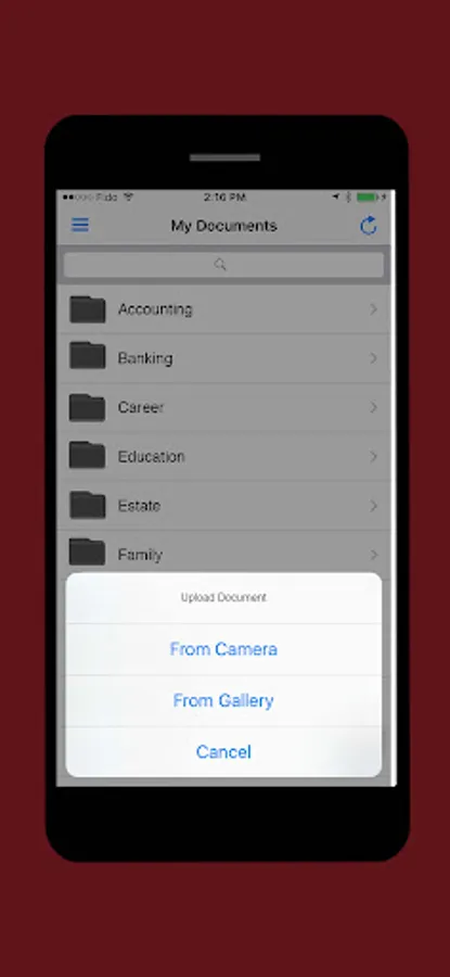 • Upload documents on the go using your camera as a scanner.