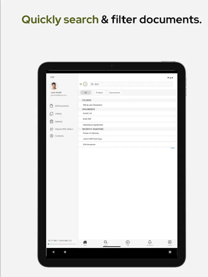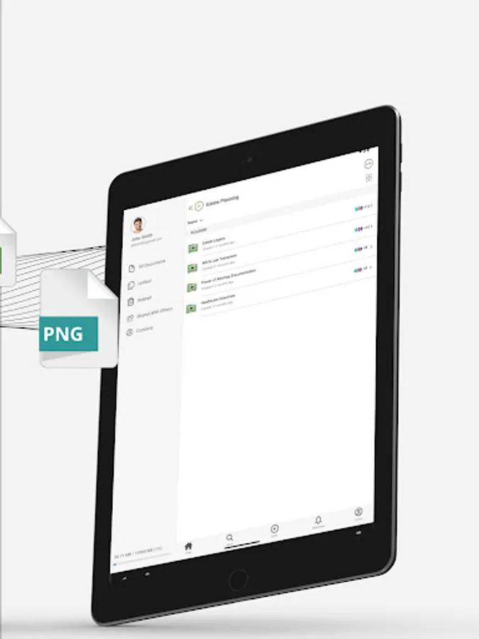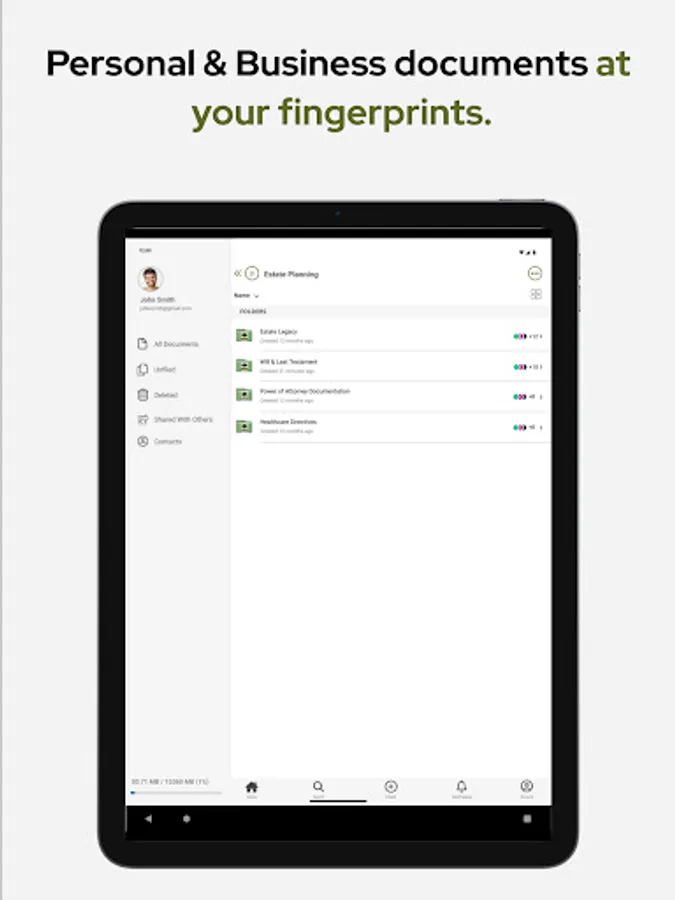 • Upload documents on the go using your camera as a scanner.