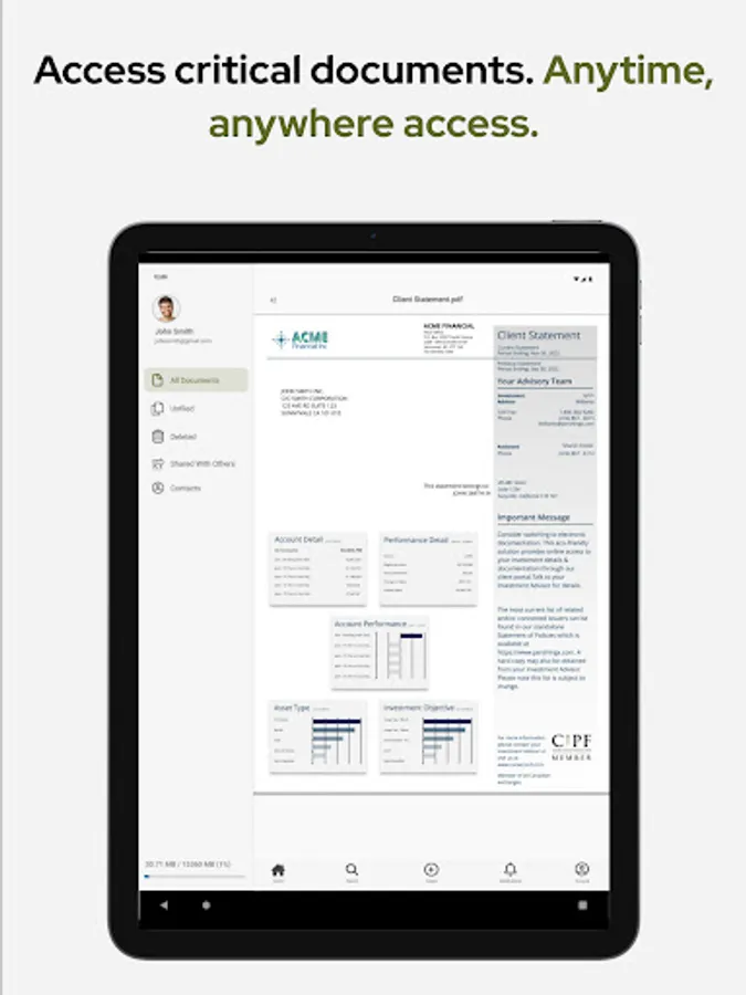 • Access your information and documents on the go, 24/7.