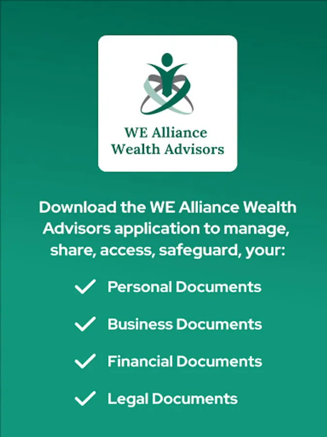 By accessing your personal WE Alliance Wealth Advisors Vault, you can easily (and securely) access, store, and manage your personal, financial, and business documents on the go, 24/7.