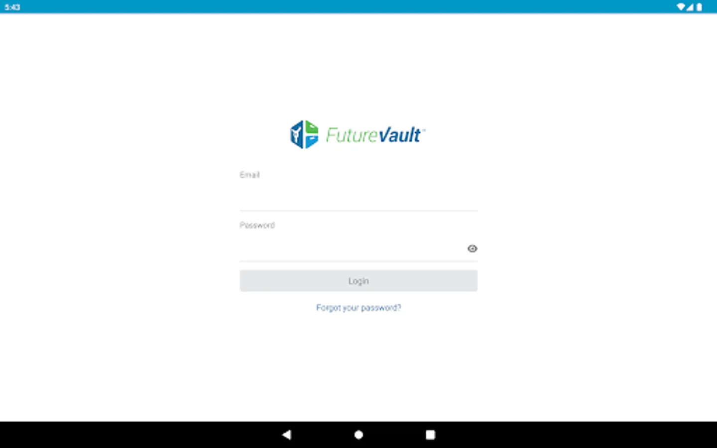 Note: You need to have an existing FutureVault account in order to login to the app.