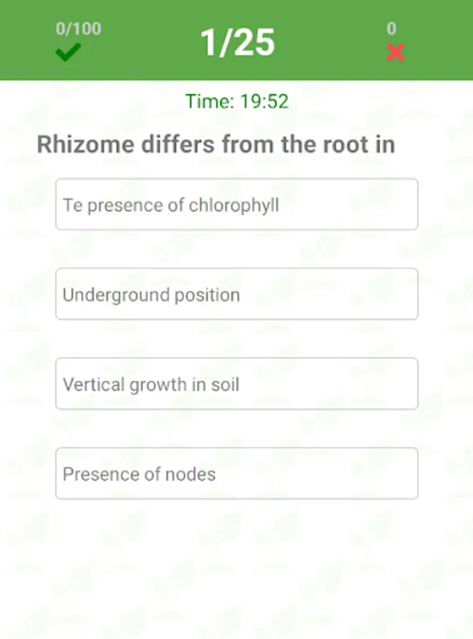 To increase your GK(General knowledge) of Botany this Botany quiz will be better helpful for you. It has above 250+ questions you can solve or learn here. Botany Quiz application is with negative marking can be also very helpful to prepare for competitive exams.
