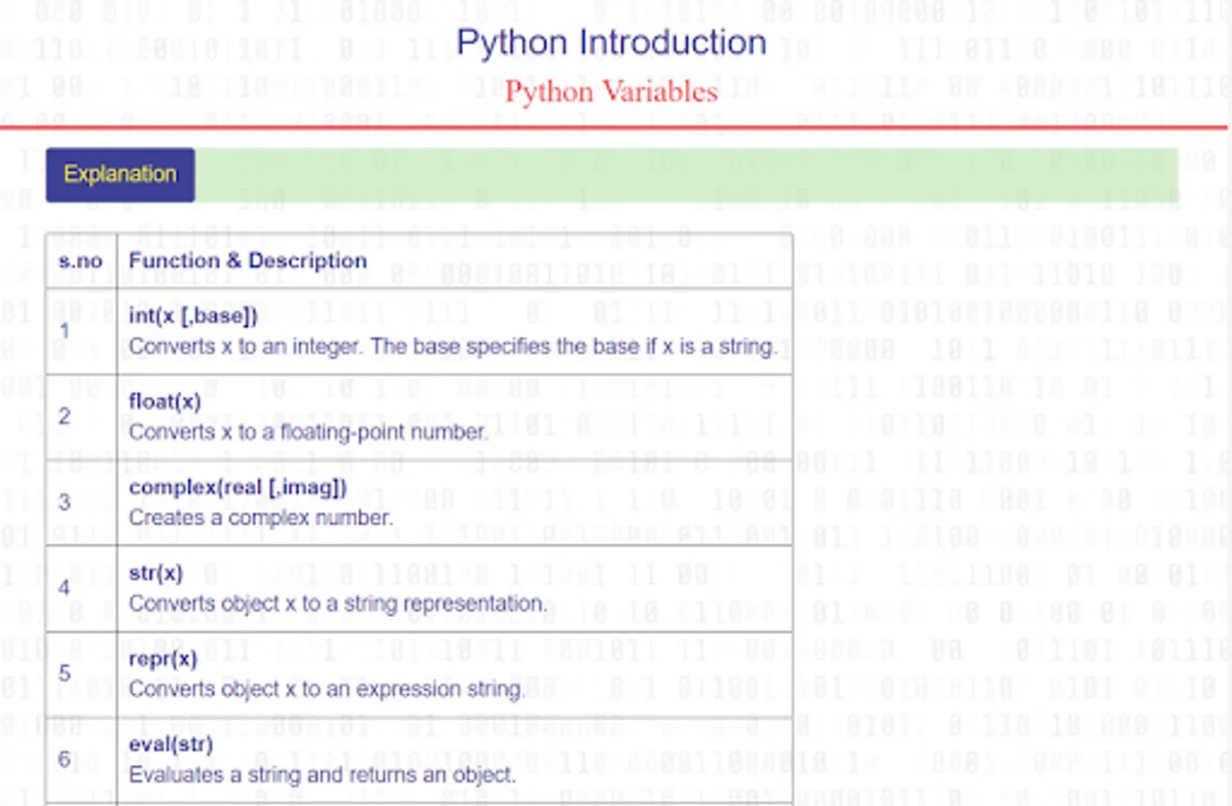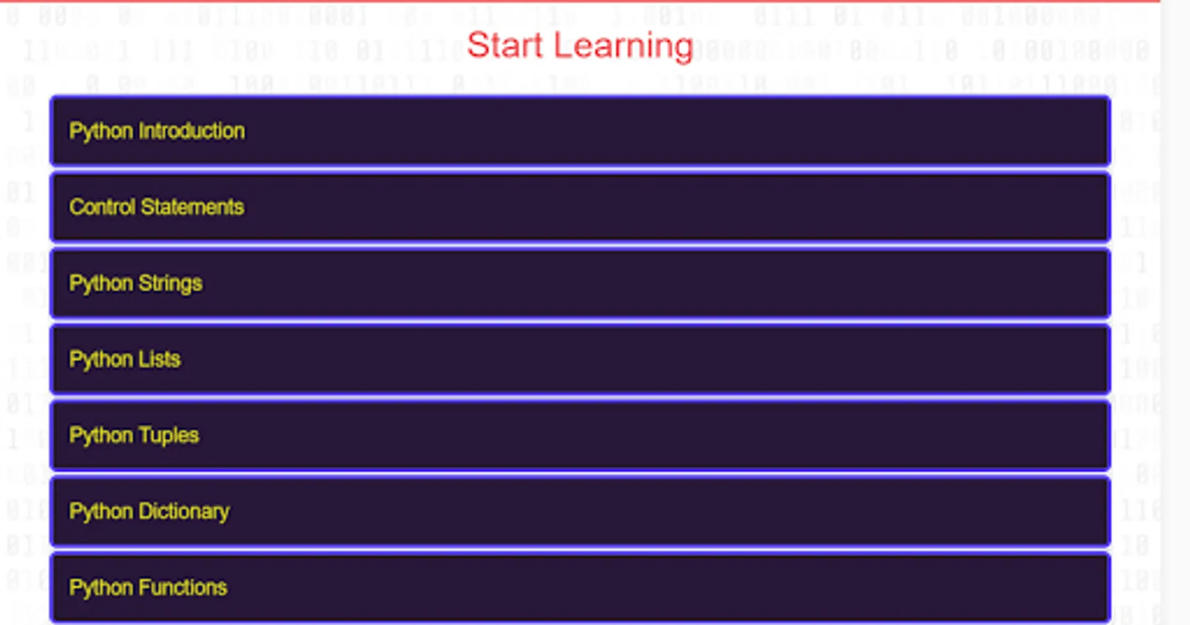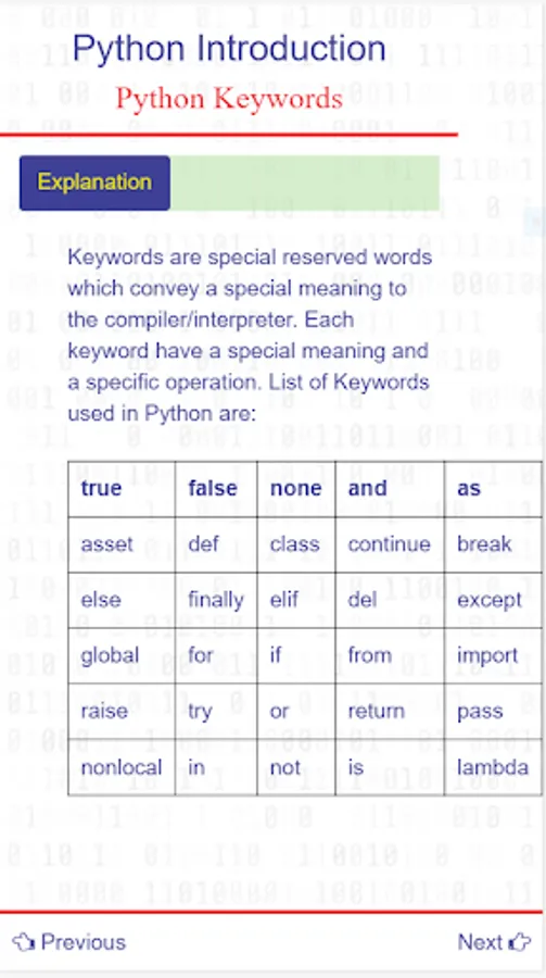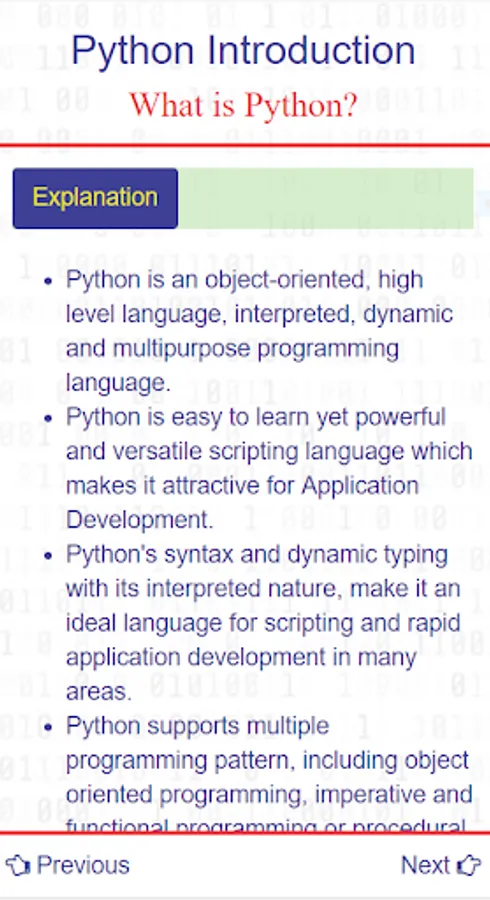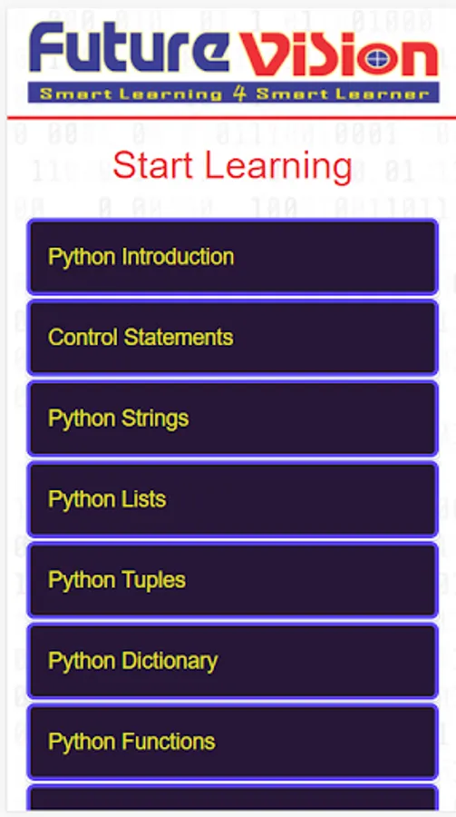 Content you learn about python in this app:
