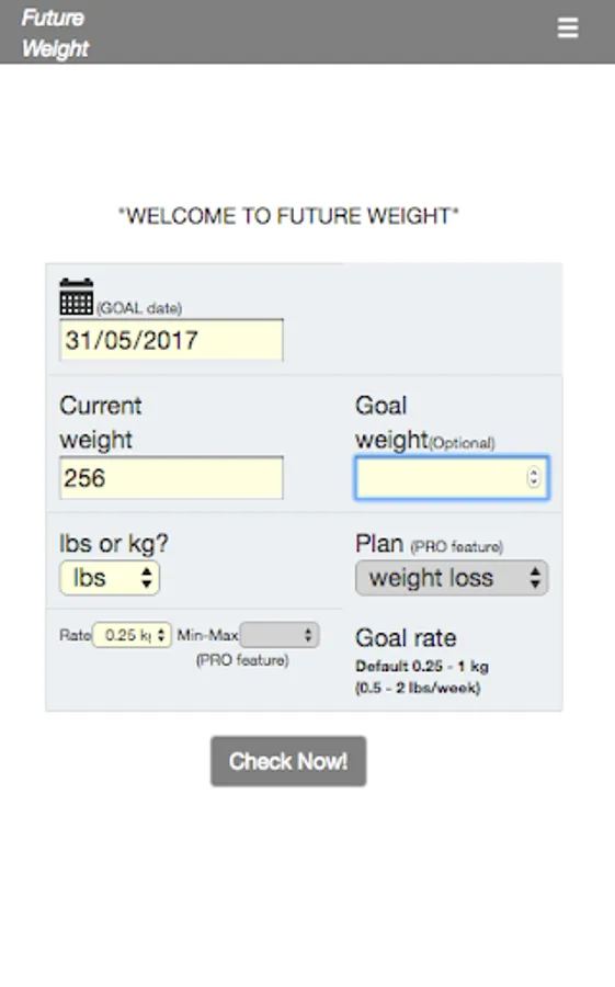 Weight loss Rate Future Checker - Calculating your ideal weight loss rate - Weight loss Planning