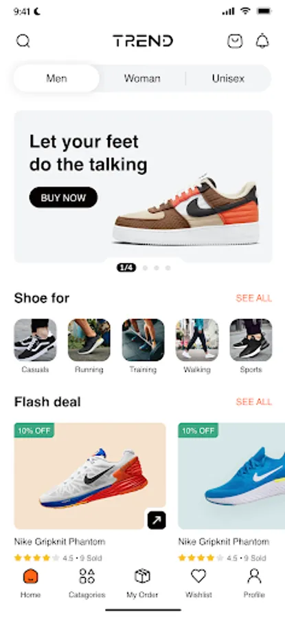 Our user-friendly app interface ensures a seamless shopping experience. Easily browse through categories, apply filters, and find your dream shoes with just a few taps. With Trend, shopping for shoes has never been so effortless!
