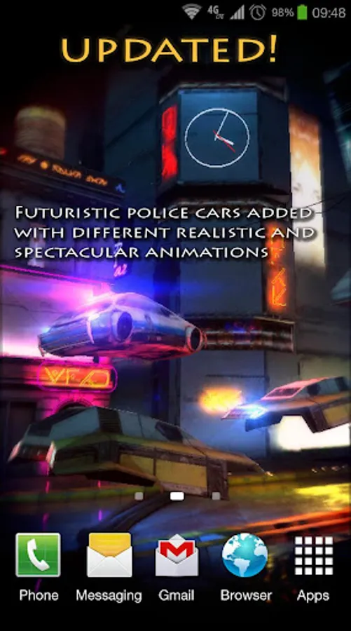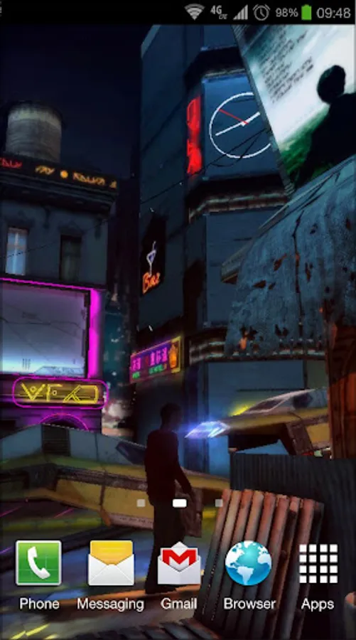 Installation: The main screen (long press) → Live Wallpaper → Futuristic City 3D Pro