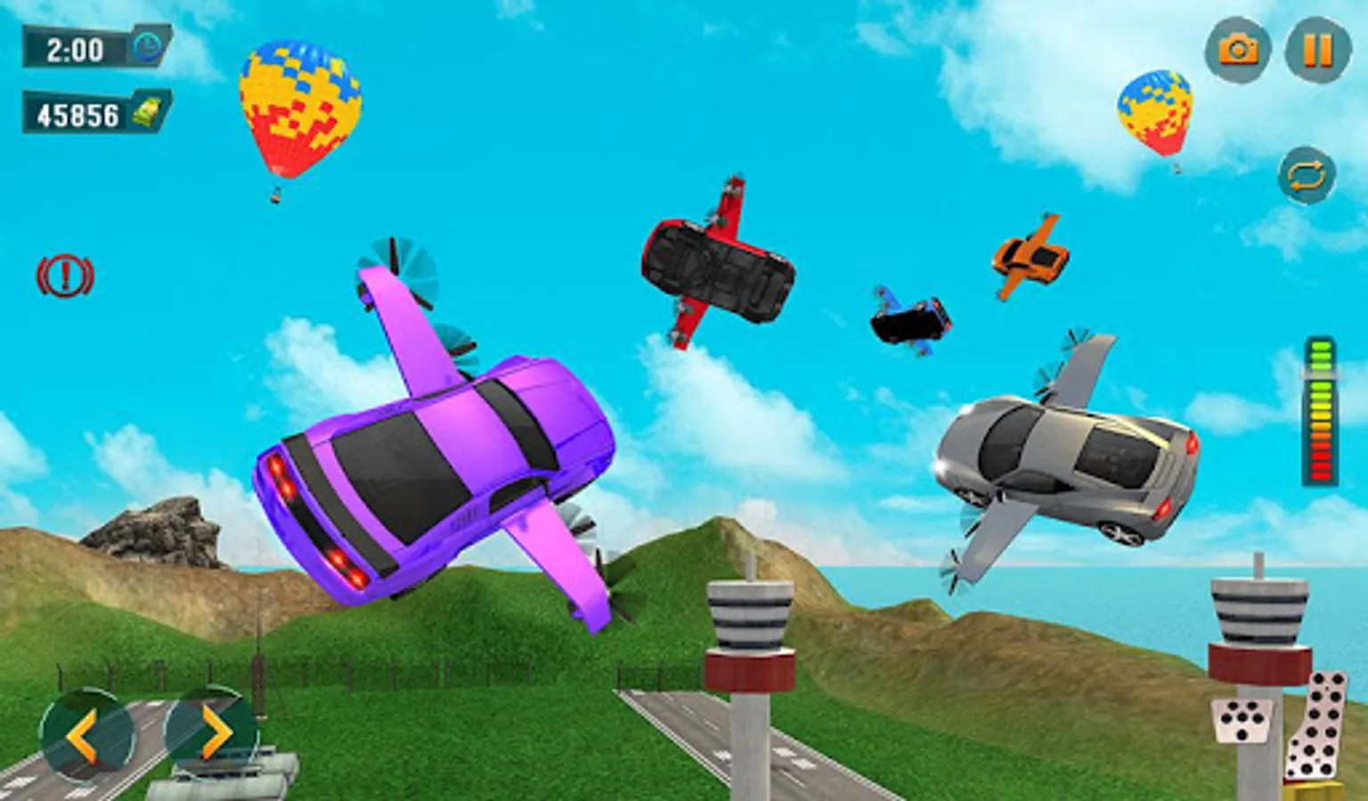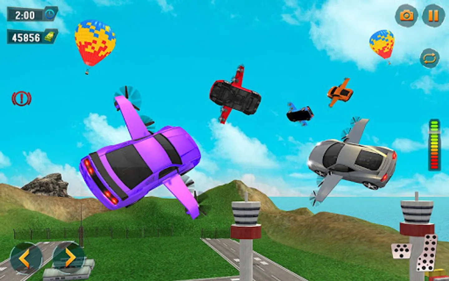 The gameplay of this car flying game is simple but very interesting its all on you either you drive your car on the asphalt highway or high in the sky for having air adventure. Your job is to collect the air flying rings and avoid hitting any traffic flying car or hot air balloon waving in the air. Just focus on your driving and flying for moving towards your destination. Perform air stunts and show air acrobats for making car flight game more exciting and challenging.
