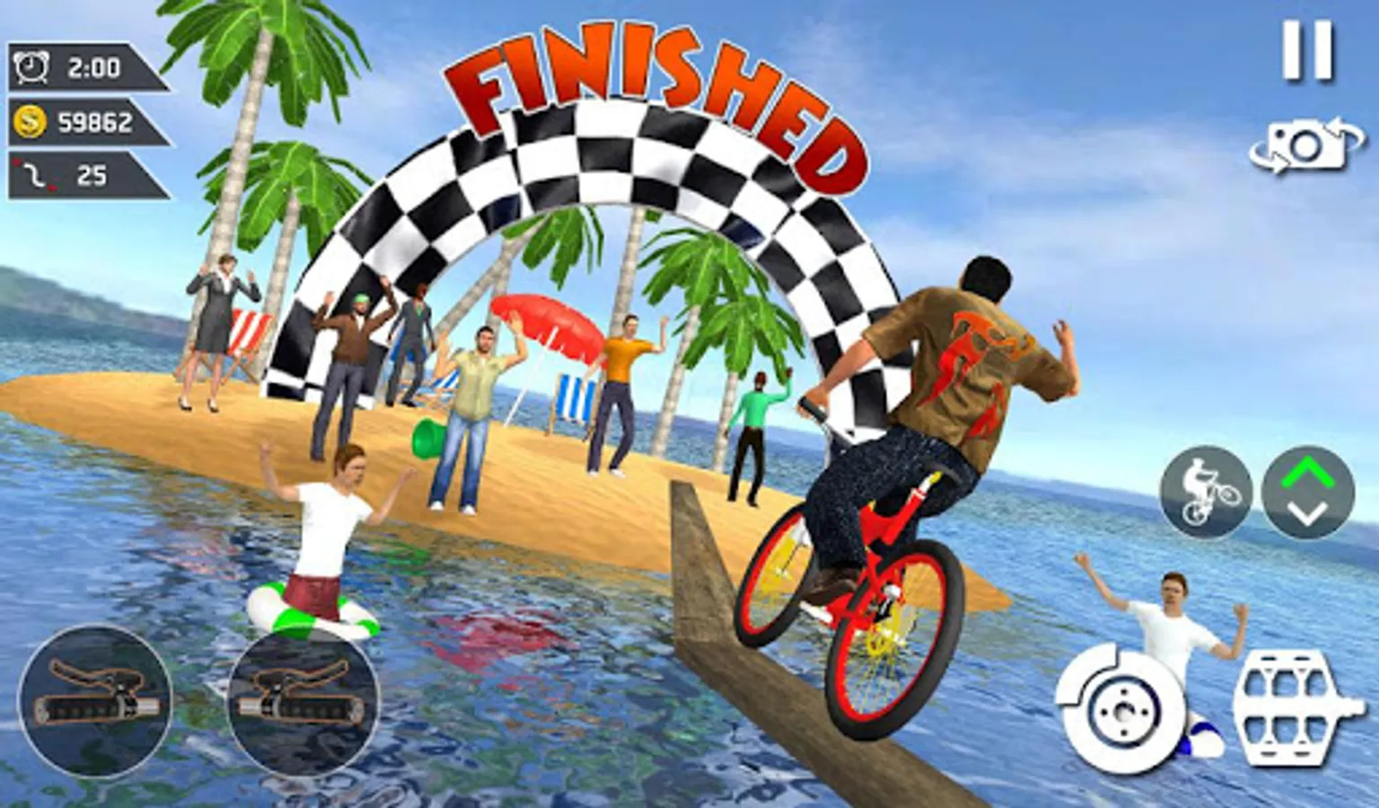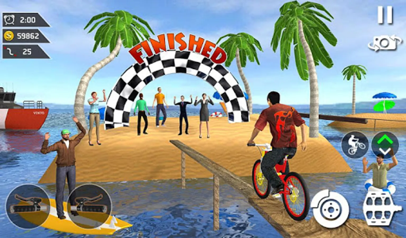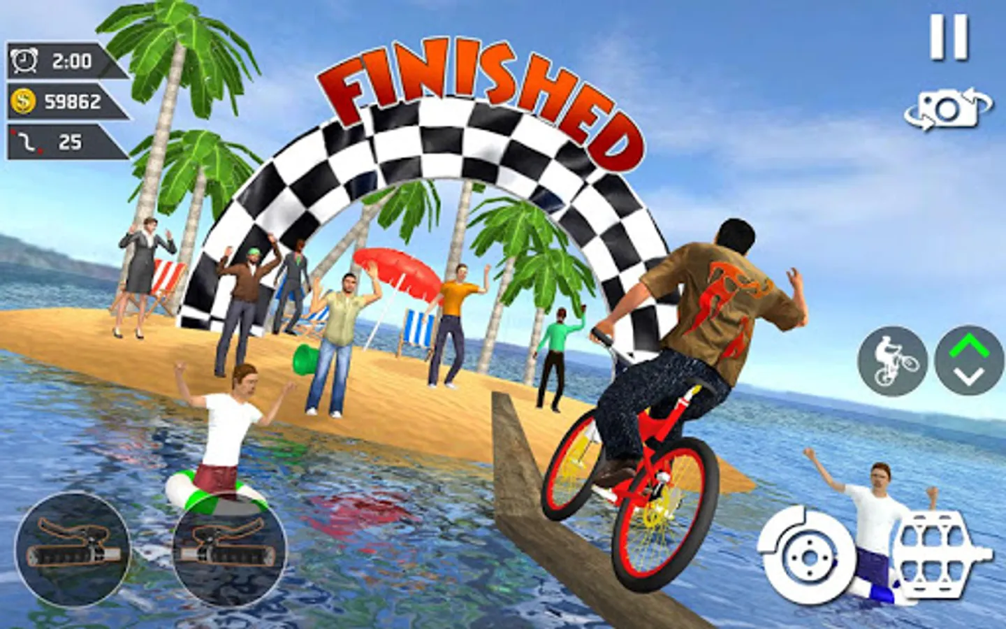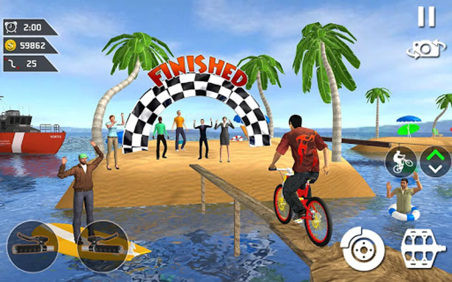 Get into the waterpark for enjoying the new way of water park bicycle racing on the edges of the deep seas. You may be a novice to this water adventure game but soon you will be highly addicted to this water surfing game due to its variety of bicycle surfers. There are the variety of bicycles available in the game store you can purchase it with the in-game cash. The more you complete the challenging missions of bike rider the more you would earn the in-game cash for earning the other bmx cycles.