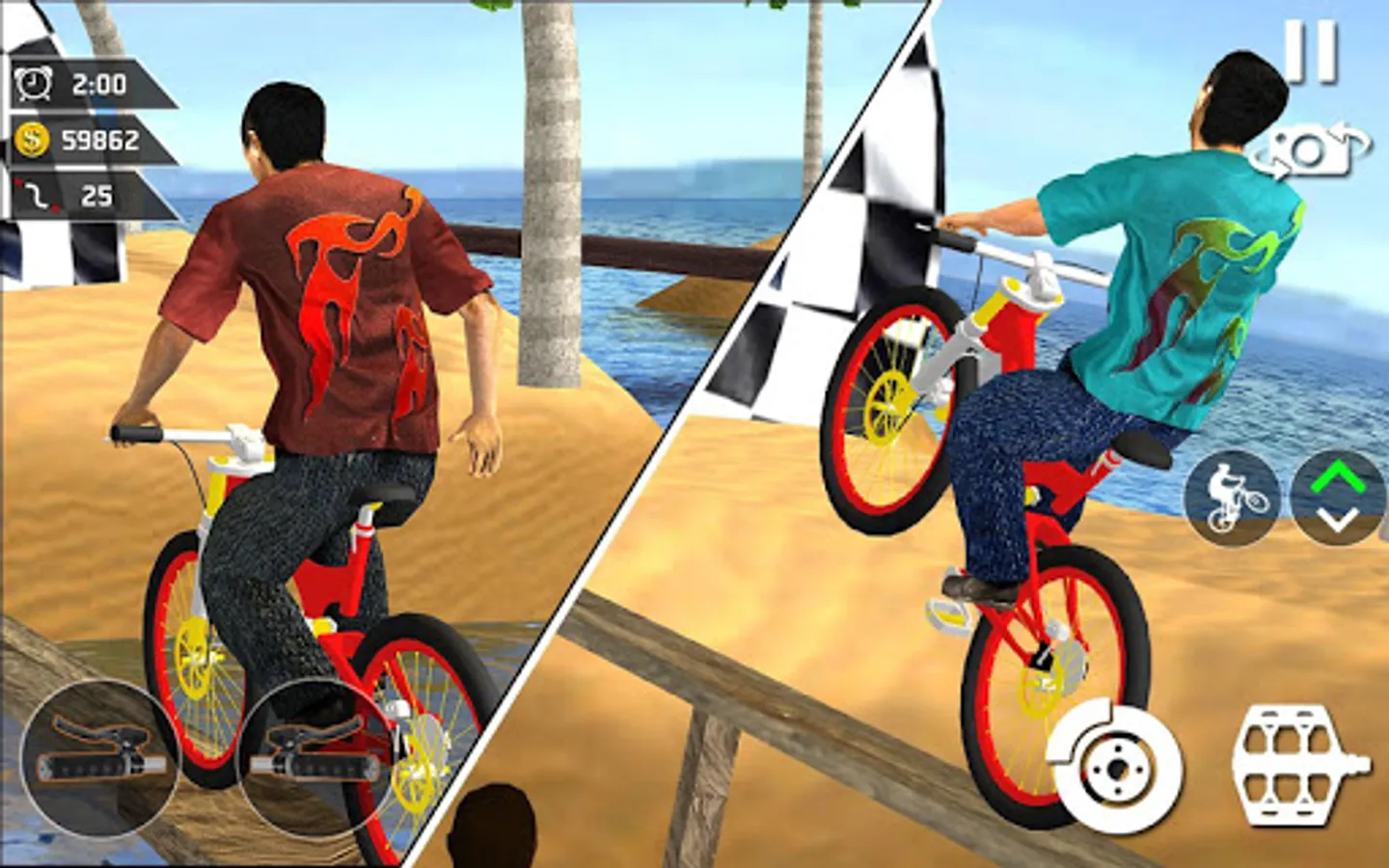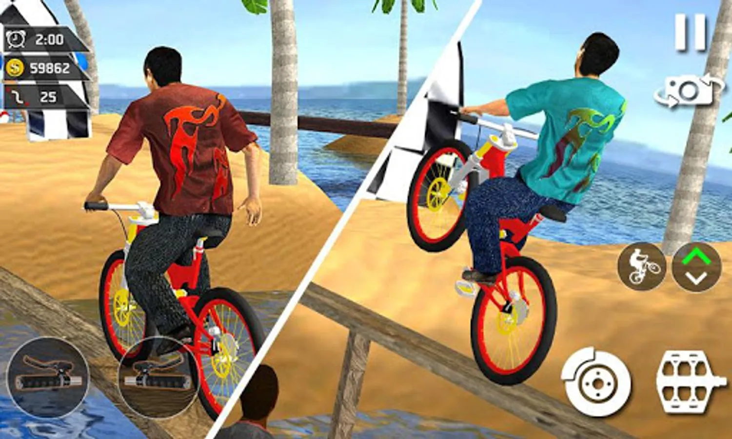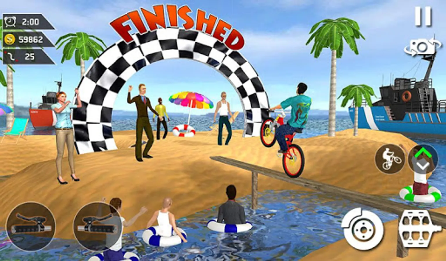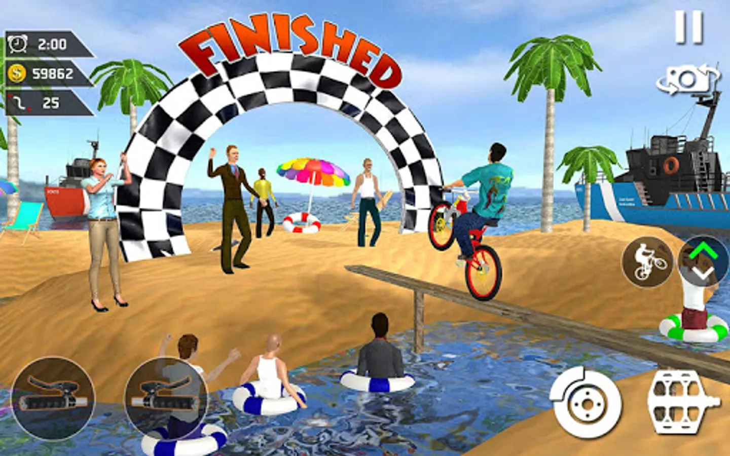 Get into the waterpark for enjoying the new way of water park bicycle racing on the edges of the deep seas. You may be a novice to this water adventure game but soon you will be highly addicted to this water surfing game due to its variety of bicycle surfers. There are the variety of bicycles available in the game store you can purchase it with the in-game cash. The more you complete the challenging missions of bike rider the more you would earn the in-game cash for earning the other bmx cycles.