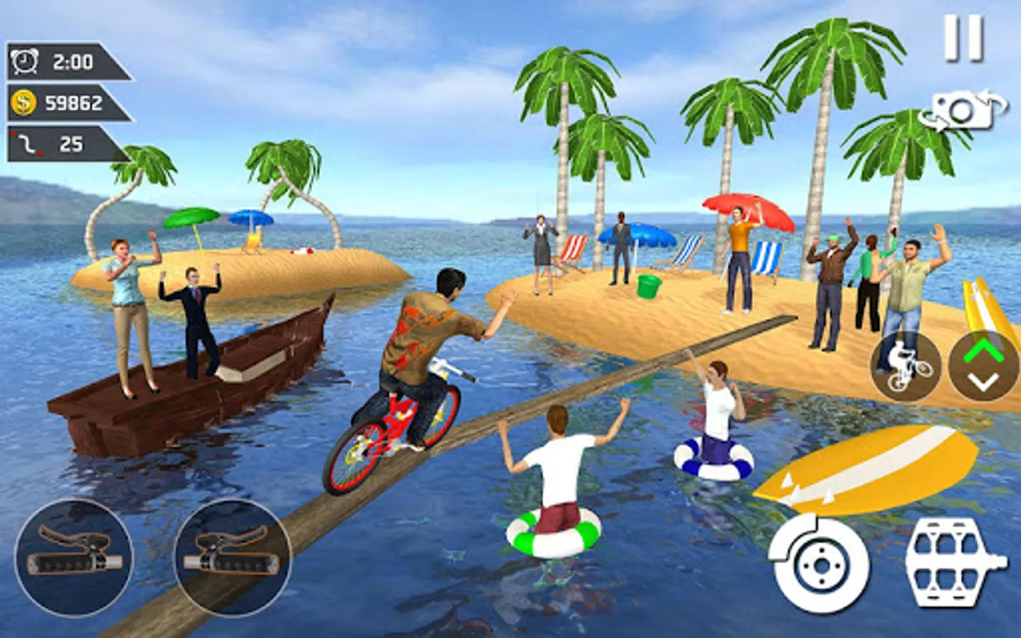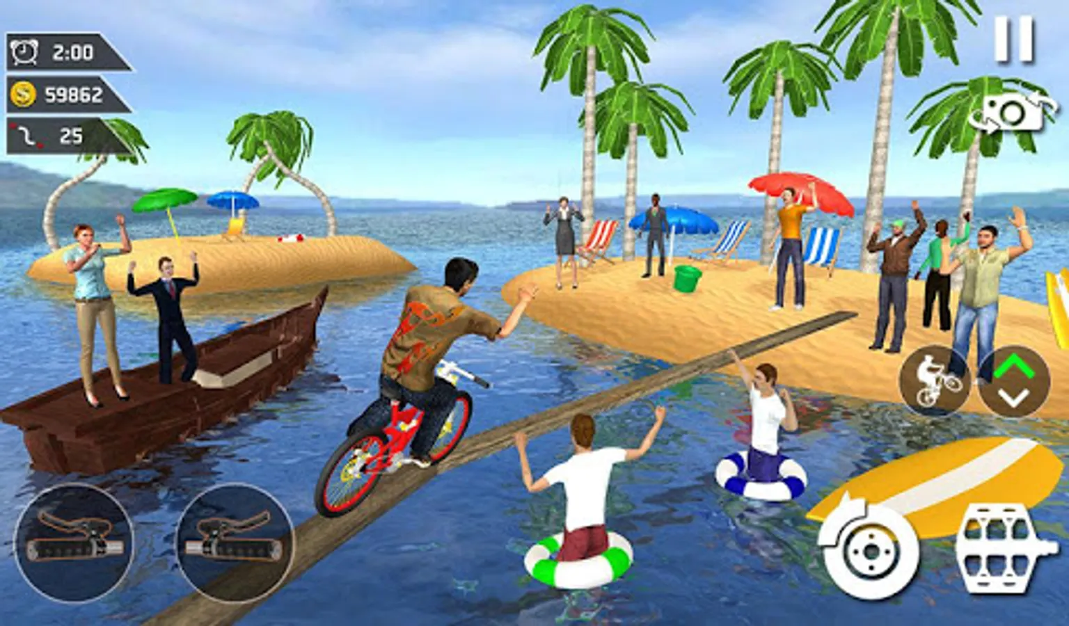Waterpark Bicycle Surfing - BMX Cycling game is based on the latest concept of bicycle stunts over the water. There are the variety of wooden logs and hurdles scattered on the water, you have to cross all the hurdles for reaching your destination point. Bicycle racing in water is the new idea in bmx cycling world because this is totally different from other bicycle games.