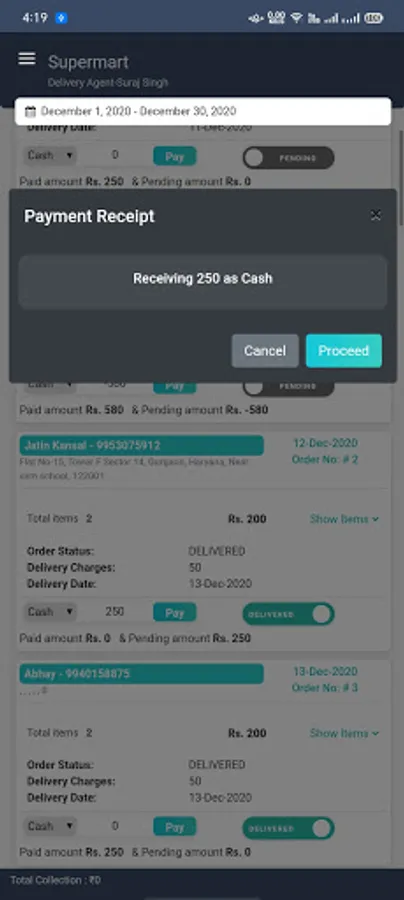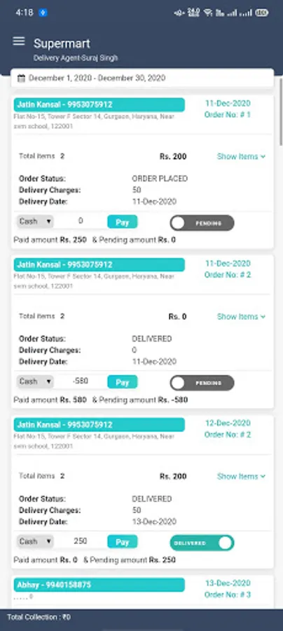 MyCornerShop offers an exclusive and controlled rights to the delivery agent to get real time orders, track deliveries and payments accordingly.