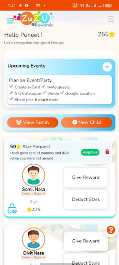4. The application is now fully functional. You can confirm tasks, claim rewards, add children's, add family members and check the rewards history.