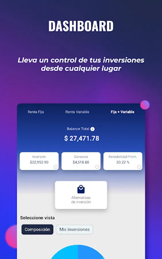 After having made an investment with us, our app will give you the option of having an effective, agile and transparent control of your investment or investments made, in addition to giving you the possibility of having an ordering and 24/7 access to all related documentation with your investments.
