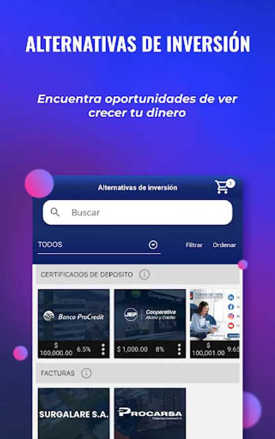 To be able to invest with us you can be of Ecuadorian or foreign nationality, but as requirements you must have a valid Ecuadorian identity document (cédula), and an active bank account in Ecuador. This app is available for download worldwide.