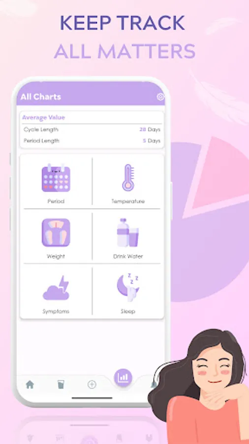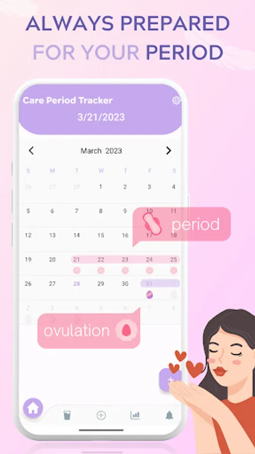 Keep track of your menstrual cycles with Period Calendar. It tracks your periods, cycles, ovulation and the chance of conception. Period tracker helps both women looking to conceive and those trying to birth control.