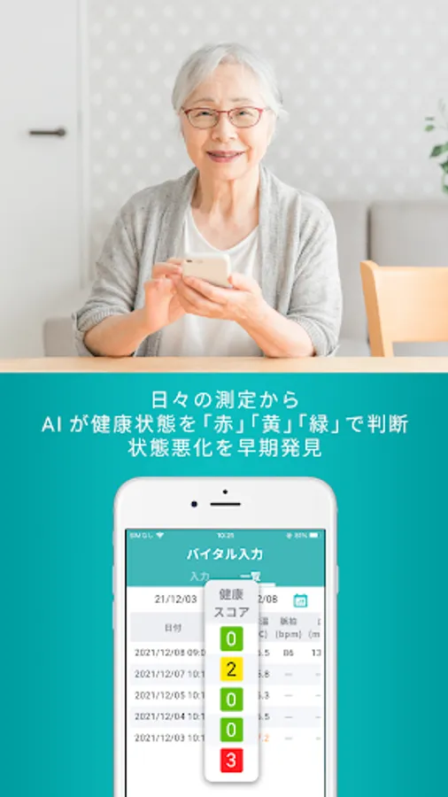 Healthcare Home manages daily vital information (body temperature, blood pressure, pulse, SpO2, respiratory rate, blood sugar level, weight) and detects and notifies you of abnormal vital values.