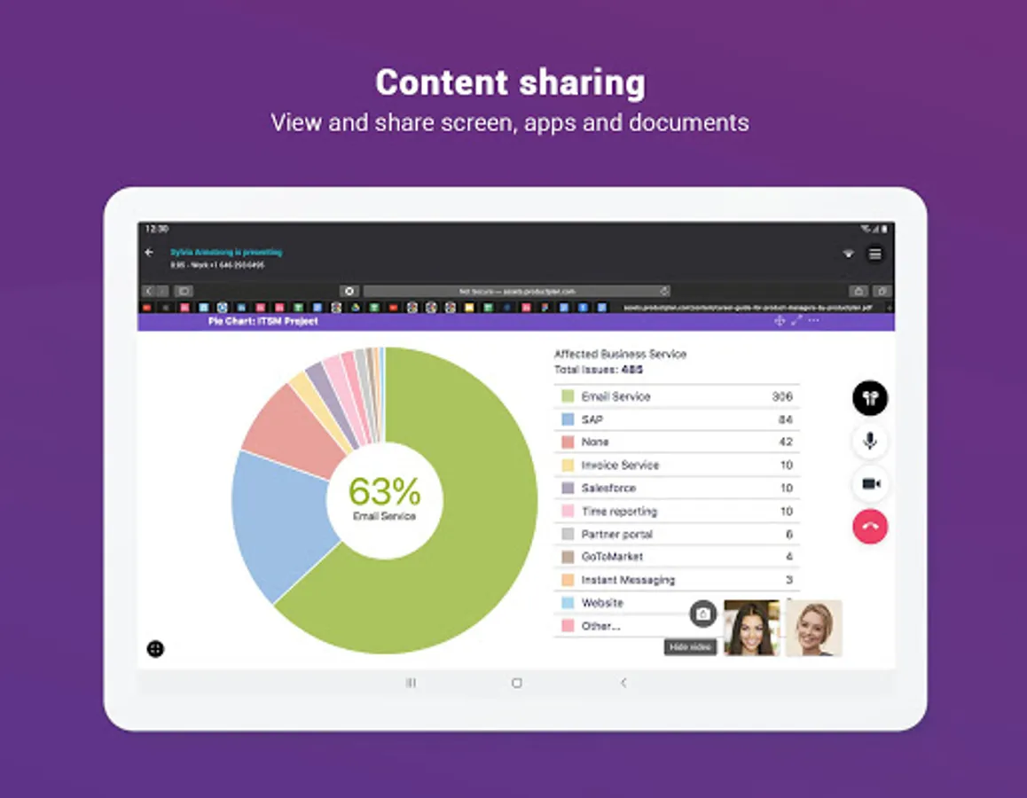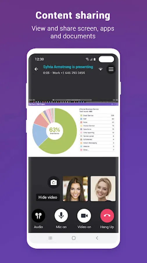 • Calling over Wi-Fi, data or carrier with video and screen share