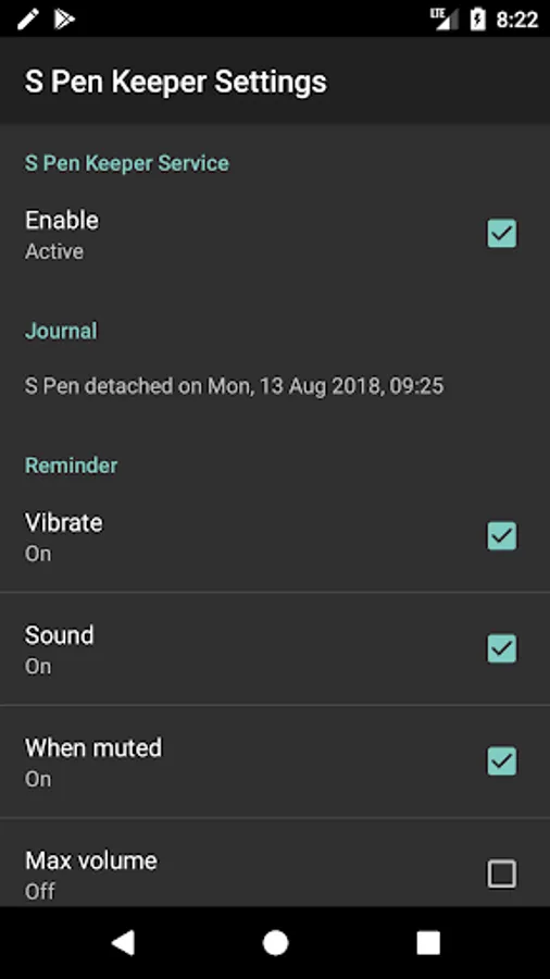 S-Pen Keeper is a smart tiny companion utility to your S-Pen enabled Samsung device. It keeps an eye on your valuable S-Pen and will remind you to attach it if you're moving away without it.