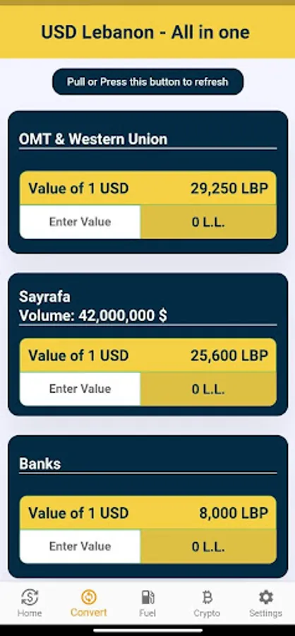 - Use the app’s calculators for all your conversions (USD-LBP, OMT, Sayrafa, Bank)