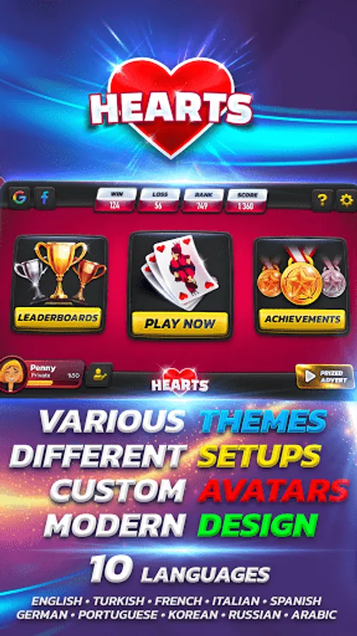 Improve your hearts playing skills by playing our top-ranked free Hearts cards game with Leaderboards and Achievements. With all the Statistics and Smart AI opponents, you will enjoy joker card game offline. Download and play hearts card game to become best player of card game.