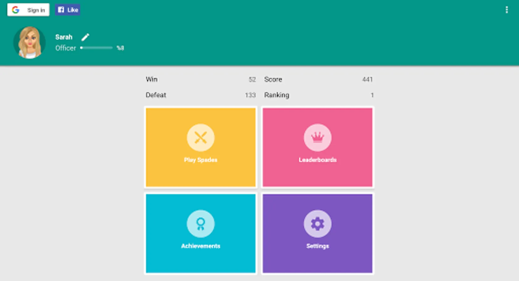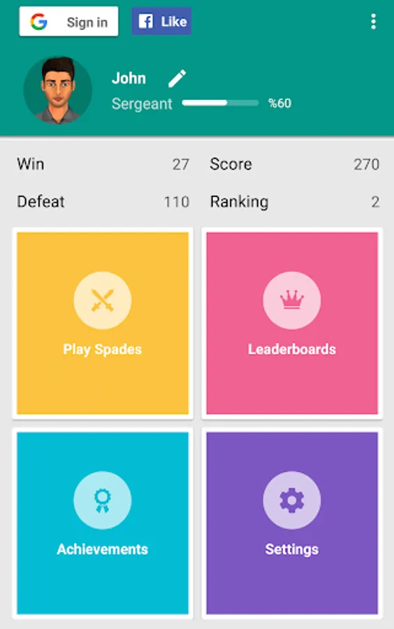 Spades free brings this classic 4-player contract trick taking card game to Google Play, created to the same high standard as the rest of our games, Spades plus supplies classy graphics, super smooth gameplay, highly scalable difficulty & much more! Play Spades free. Spades download.
