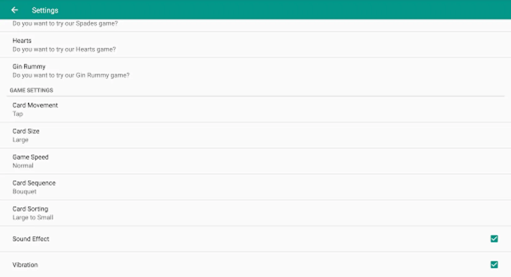 Spades Online Settings: