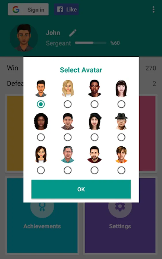 12 Avatars selection,