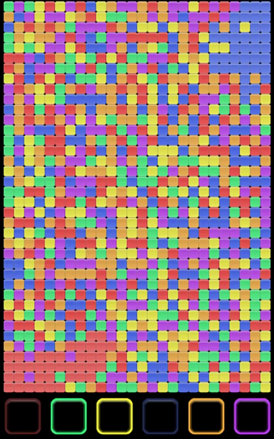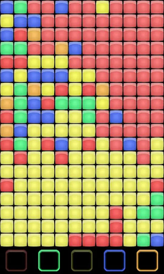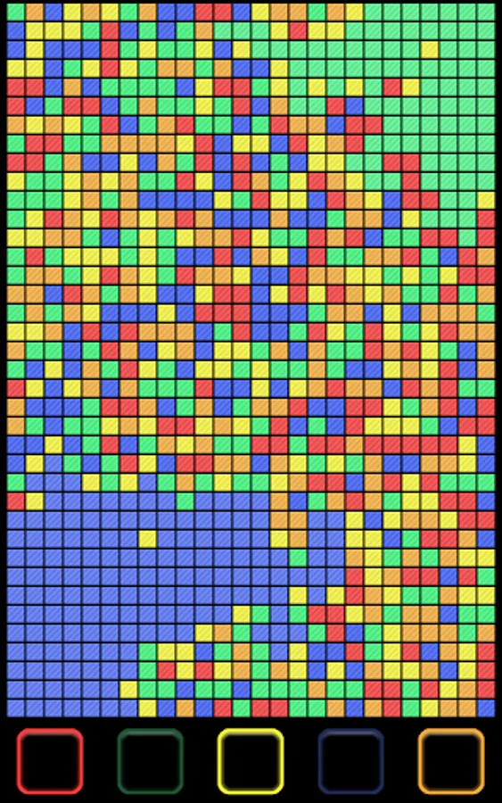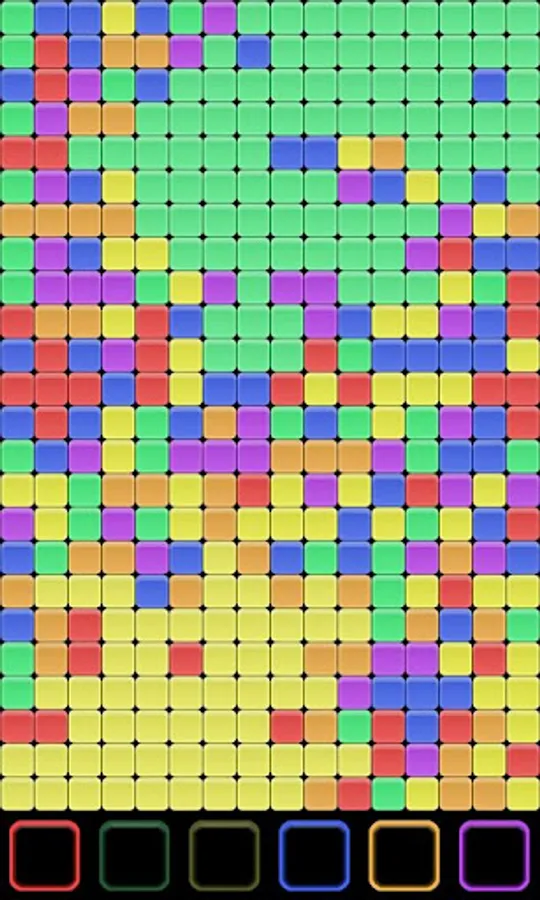 You start at the bottom left corner and your opponent starts at the top right corner. Each player takes a turn to select the color they want to absorb. This is done by pressing a button with the corresponding color located at the bottom of the screen. Colors currently in use by any of the players cannot be selected.