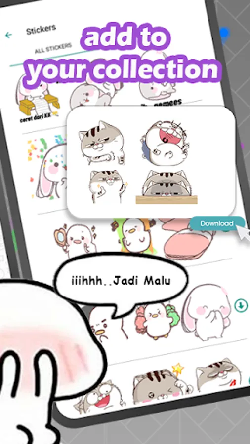 You can send cute Mochi Cats , Cute bunny, Funny Panda stickers directly to WhatsApp.