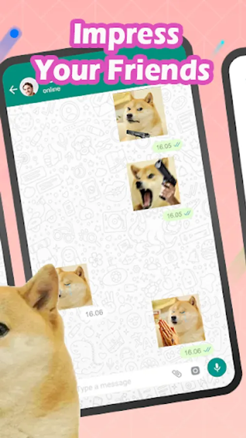 You can send cute and funny dogs and meme doge stickers directly to WhatsApp.