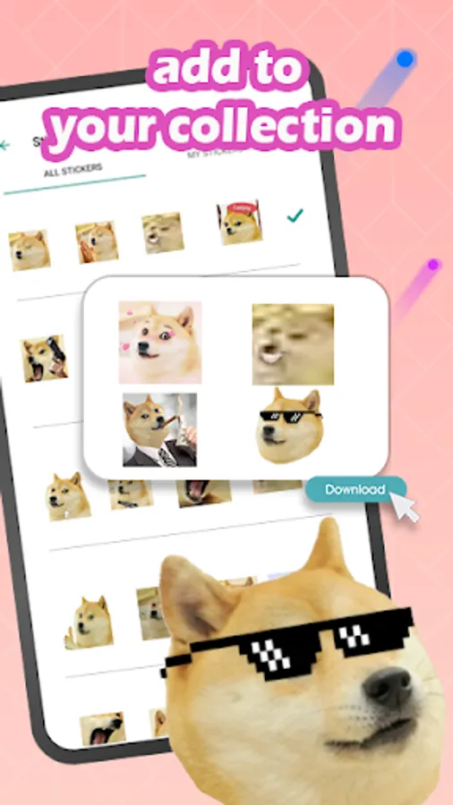 Express a wide range of emotions, from joy and laughter to surprise and love, with our extensive selection of Doge meme-inspired stickers.