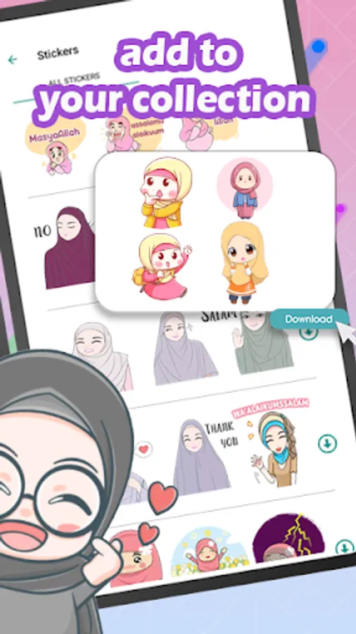 The latest and best collection of Islamic Stickers equipped with animated images and Islamic words.