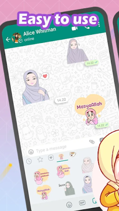 Hijab Muslimah Stickers For Whatsapp has a Free amazing stickers for chat.