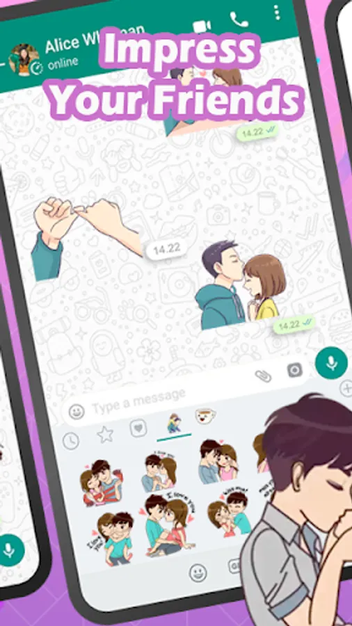 Now shock your friends using this ultimate stickers pack and send kiss stickers to your love.