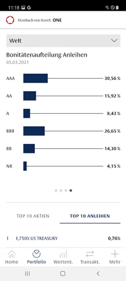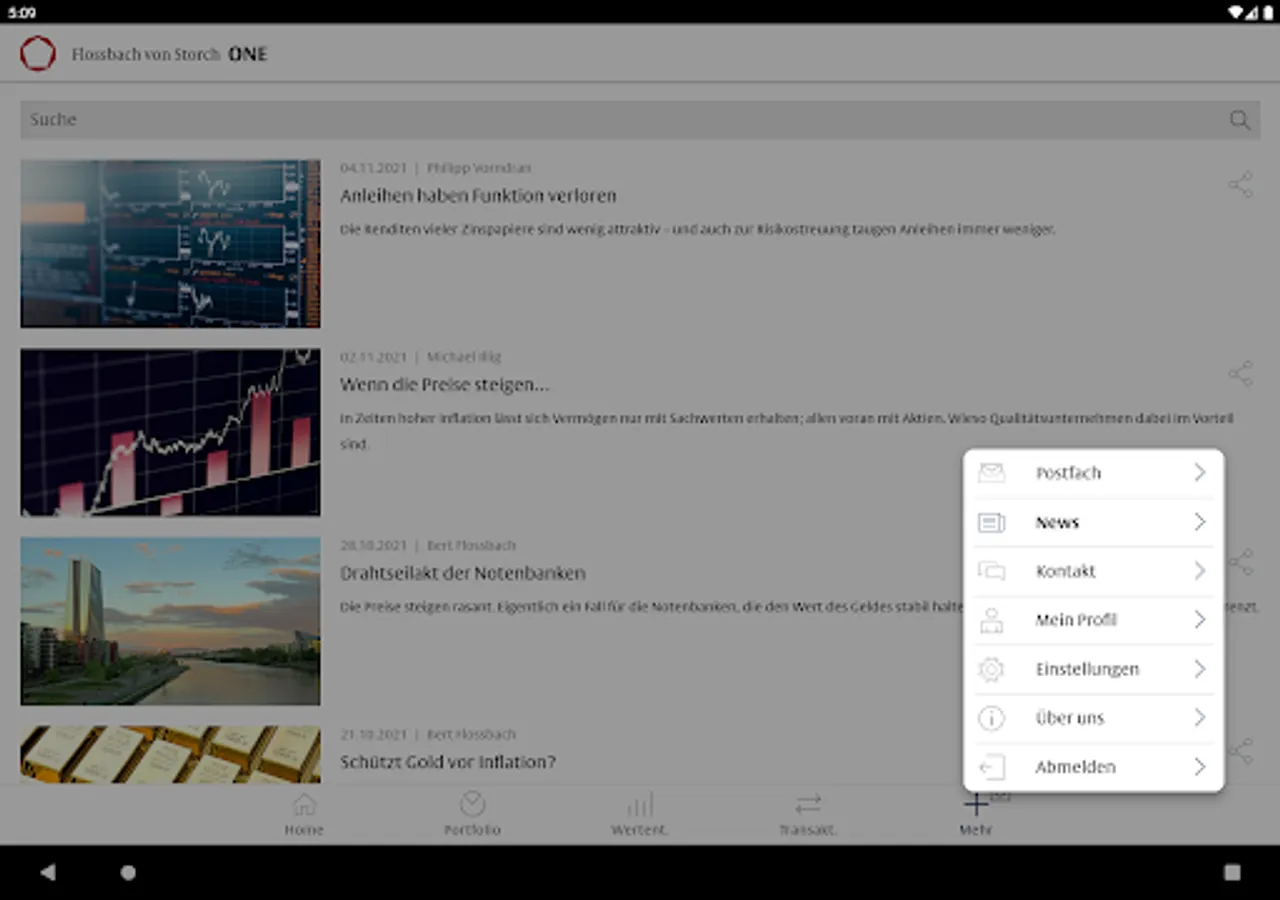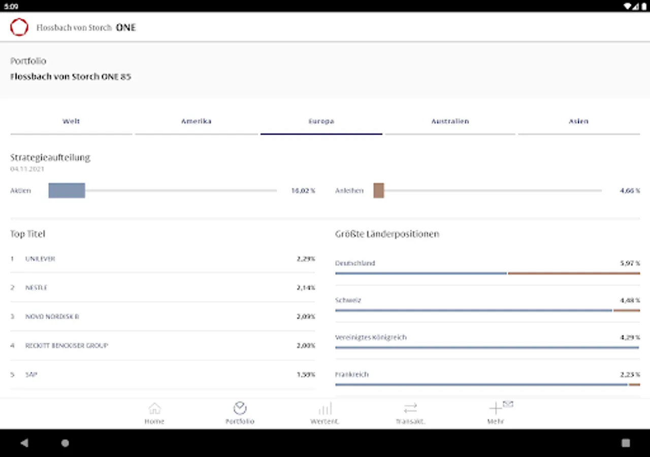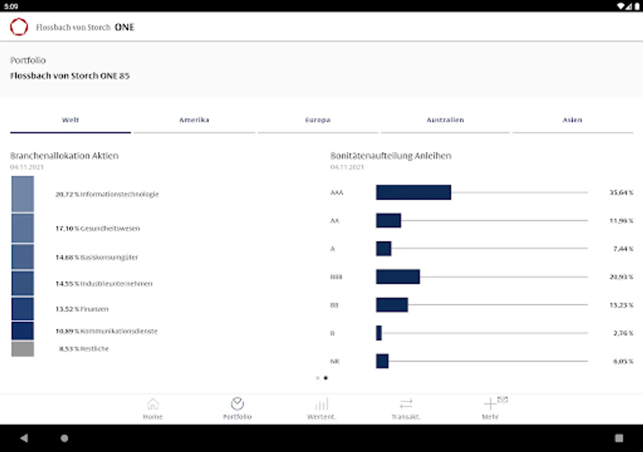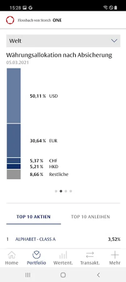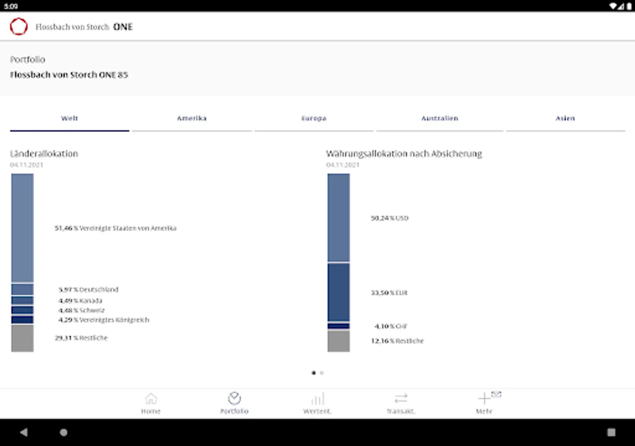 With the Flossbach von Storch ONE app, you receive comprehensive information on the breakdown of your assets by asset class, currency, region and individual title. You can call up the performance at any time, find out about the capital market environment and download all relevant tax documents. With Flossbach from Storch ONE you are constantly informed - intuitive, easy and convenient.