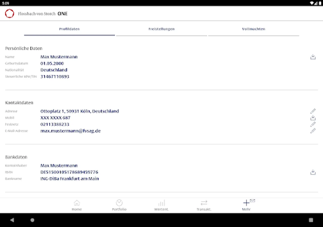 The most important functions of the Flossbach von Storch ONE app: