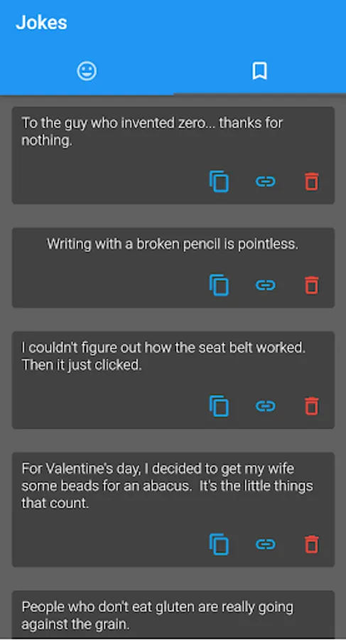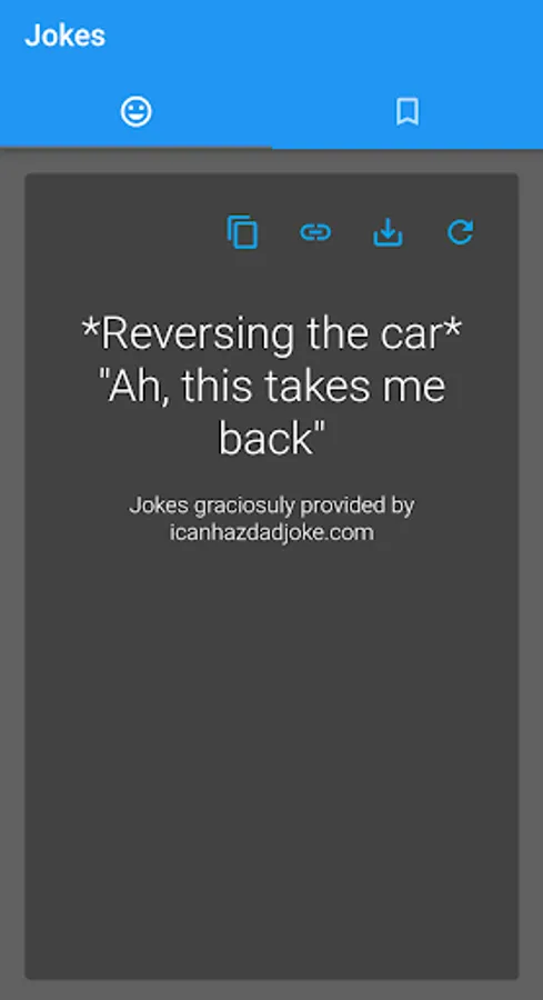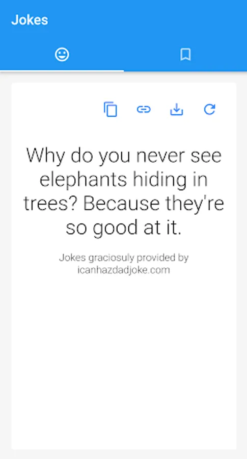 The developer is not responsible for any jokes presented in this app, nor do the jokes necessarily reflect the views of the developer. Jokes provided by https://icanhazdadjoke.com/