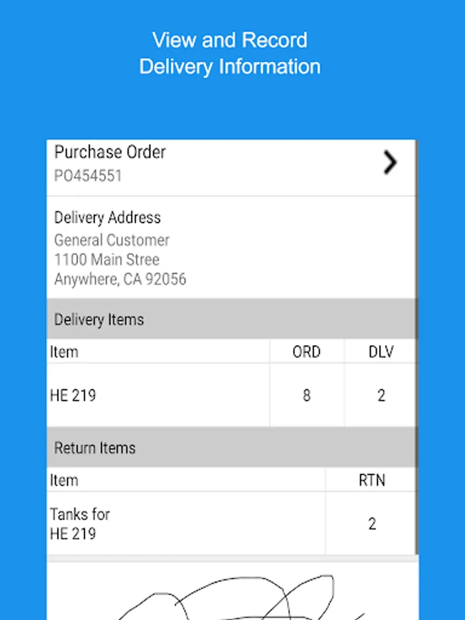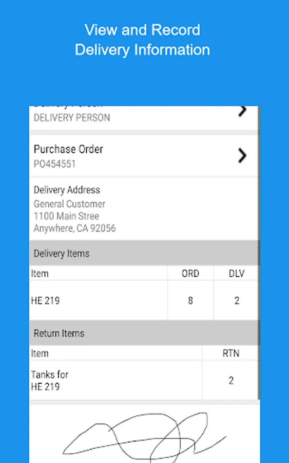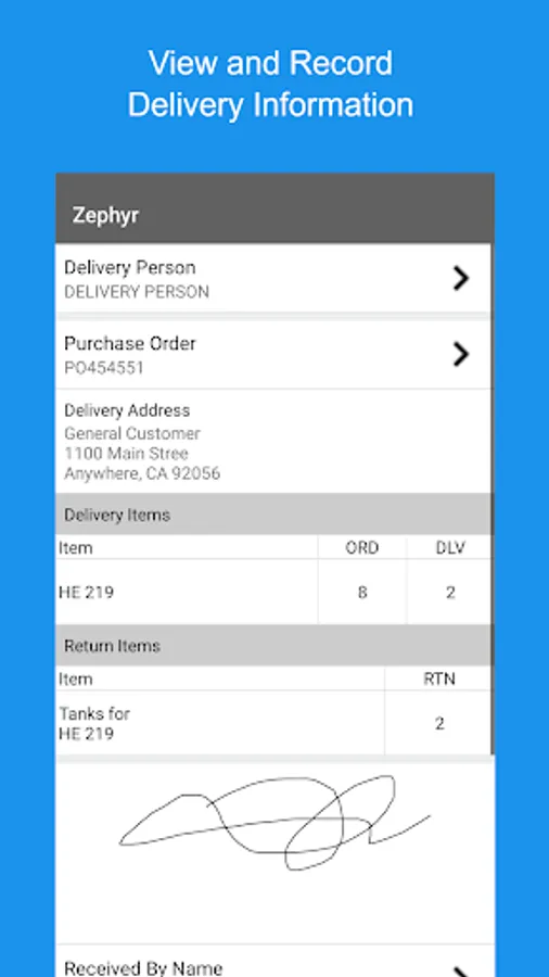 The Zephyr Delivery App allows Distributors to collect delivery and pickup information, capture signatures, and take photos.