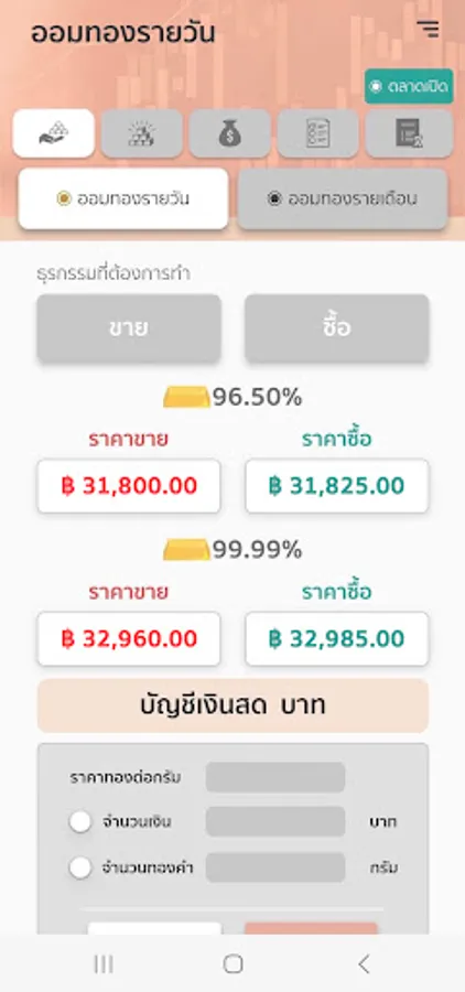 - แอปฯ เดียวที่ให้คุณเลือกลงทุนทองได้ทั้ง ทองคำ 99.99% เเละ 96.5%