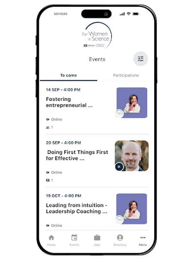 ‘For Women in Science Community’ application allows to connect our alumnae from all around the world and to create a strong community of women in science. This application enables them to: access news about For Women in Science programs and their scientific partners, attend events and webinars, discuss and share updates from the community worldwide, be trained on soft skills, get involved in our programs.