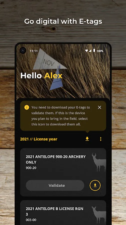 • Access your Montana hunting and fishing licenses and permits in one convenient, paperless location on your mobile device